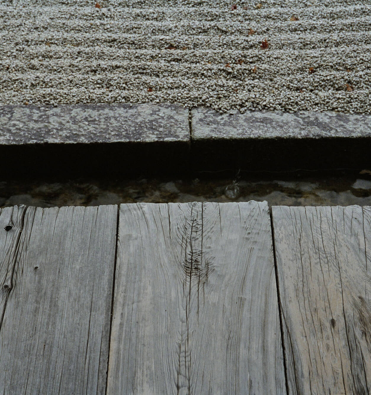 山口 この写真には、縁台の木板・縁石・白砂と、よく似たグレートーンで三つの異なる素材が隣り合っている様子が写っています。手すりも領域の内と外を明確に区分せず、隣り合わせて記号になっている。こういう抽象性や調和は、見ていて気持ちがいいですね。