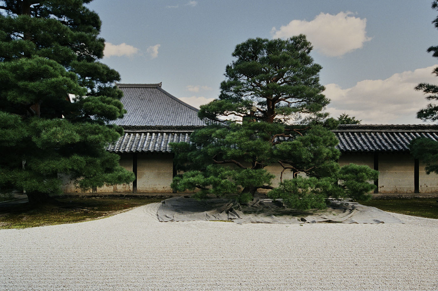 山口 現在の機能的な素材であるシートと松のセットは、写真としておもしろいとは思いますが、僕のなかでは「隣り合うマチエール」としては受け入れられないんですよね。このプロジェクトを通して庭の美しさを知ってもらいたいという思いがあるので、やはり美しいかどうかが判断基準になります。その一方で、シートがあるからこそ写真としては魅力的に感じられると思います。何気ない情景を印象的に変えている。これもまた写真の力ですね。