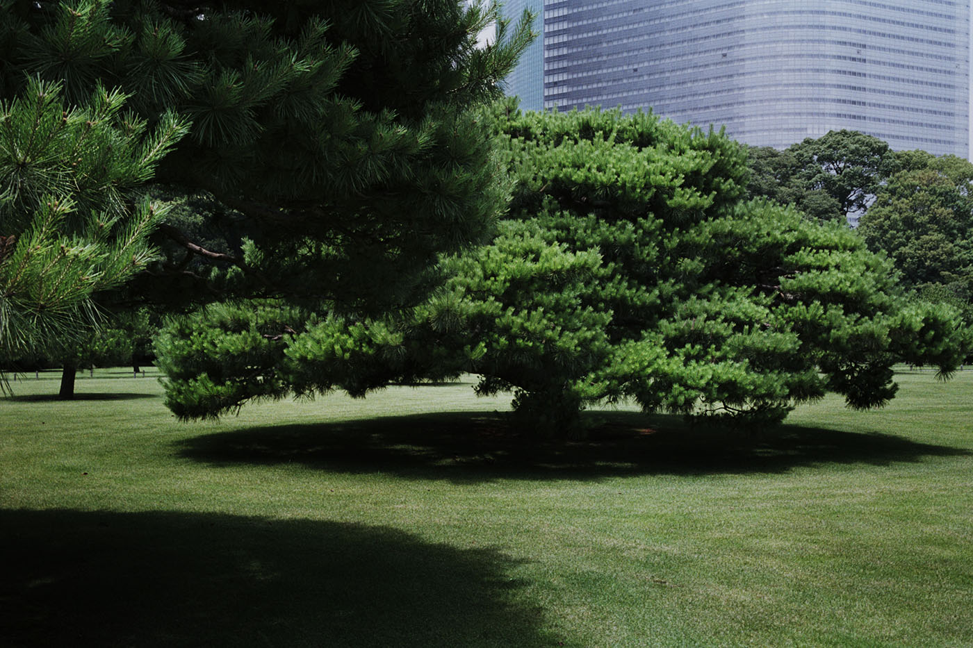 このビル群に対して公文さんは文字情報を隠して撮影してくれました。その写真を見て、「なるほどね」と僕は思ったんですよ。特に日本のビルというのは看板がたくさんついていたり、何某かのサインが入ったりしていることが多いじゃないですか。だけどこの写真にはどこにも看板などの情報がなく、ビルの上部をズバっと切られている。もし僕が撮っていたら、ビルの上部まですべてを画面に入れてしまうんですよ。でも、そうすると小石川後楽園ですべてを入れ込んだ写真のようにインパクトが弱くなるというか、説明しすぎる構図になってしまう。公文さんはズバッと上部を切ってフレーミングすることで、ここで実体験として感じられるところを切り取って写真にしていて、やっぱり写真家ってすごいなと。