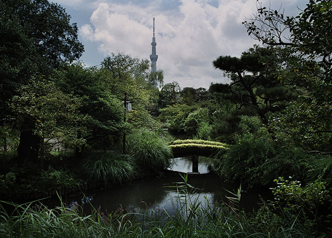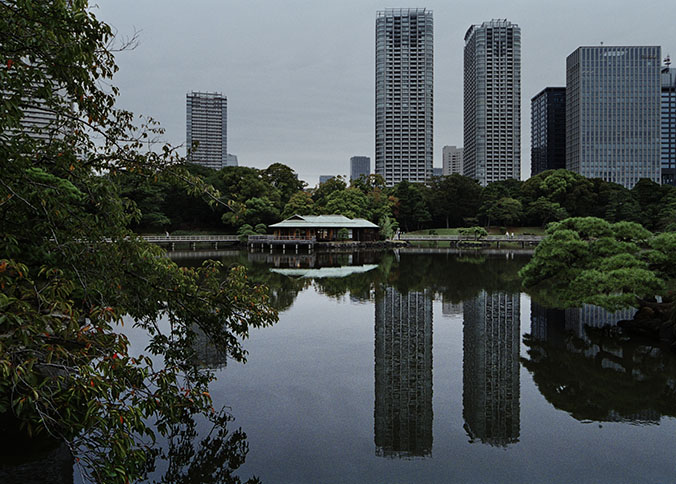 Originally a hunting ground for the Shogun family, in 1654, the Kofu domain reclaimed coastal land and built a villa. The garden was later renamed Hama Goten as a villa for the shogunate. After the Meiji Restoration, the palace came under the jurisdiction of the Imperial Household Agency, and the Ministry changed the name to Hama-rikyu. In the garden created on reclaimed land, except for some hills, the overall topography is very flat, and the high-rise buildings of Shiodome stand out like a modern forest in the background. The verticality of the modern forest and the horizontality of the pond, which exaggerates the flatness of the terrain, create a wonderful harmony. Modern architecture has become a shakkei. The garden is designated as a Special Place of Scenic Beauty by the national government.