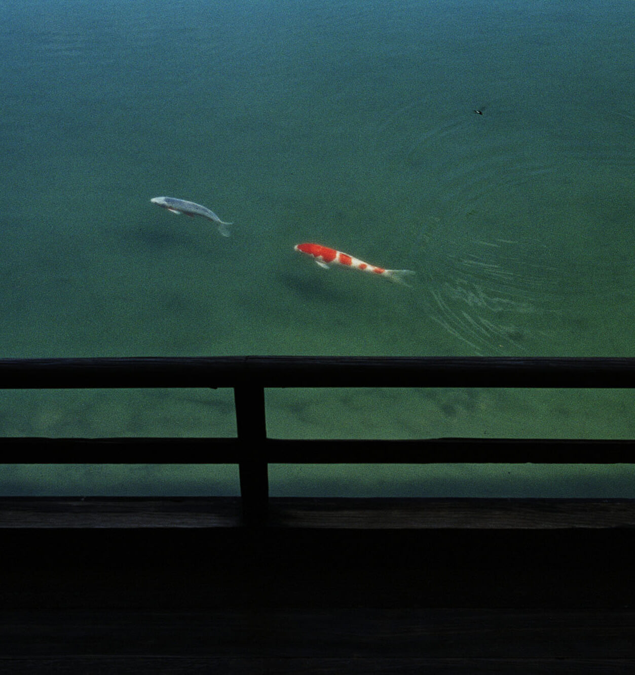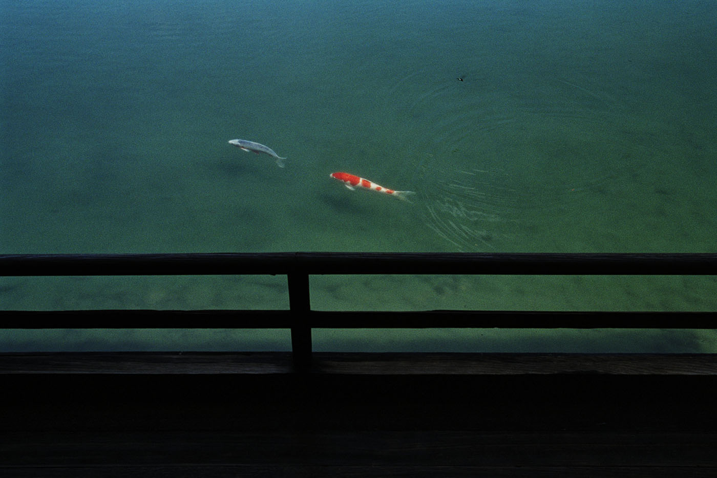 Kumon: Mr. Yamaguchi said it was one of the most amazing places in the world, so I went there with high expectations, but there was no way to capture it. The world on the outside was amazing. It was obvious that architecture and nature were one. But then the photos kept being dragged by the image of Shangri-La, no matter how or from where I photographed them. So, you can see the Shangri-La captured in this photo of koi. It was like I was in a dream, and I felt the most connected to it.