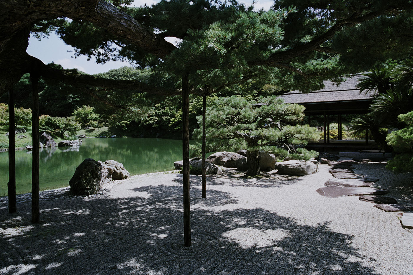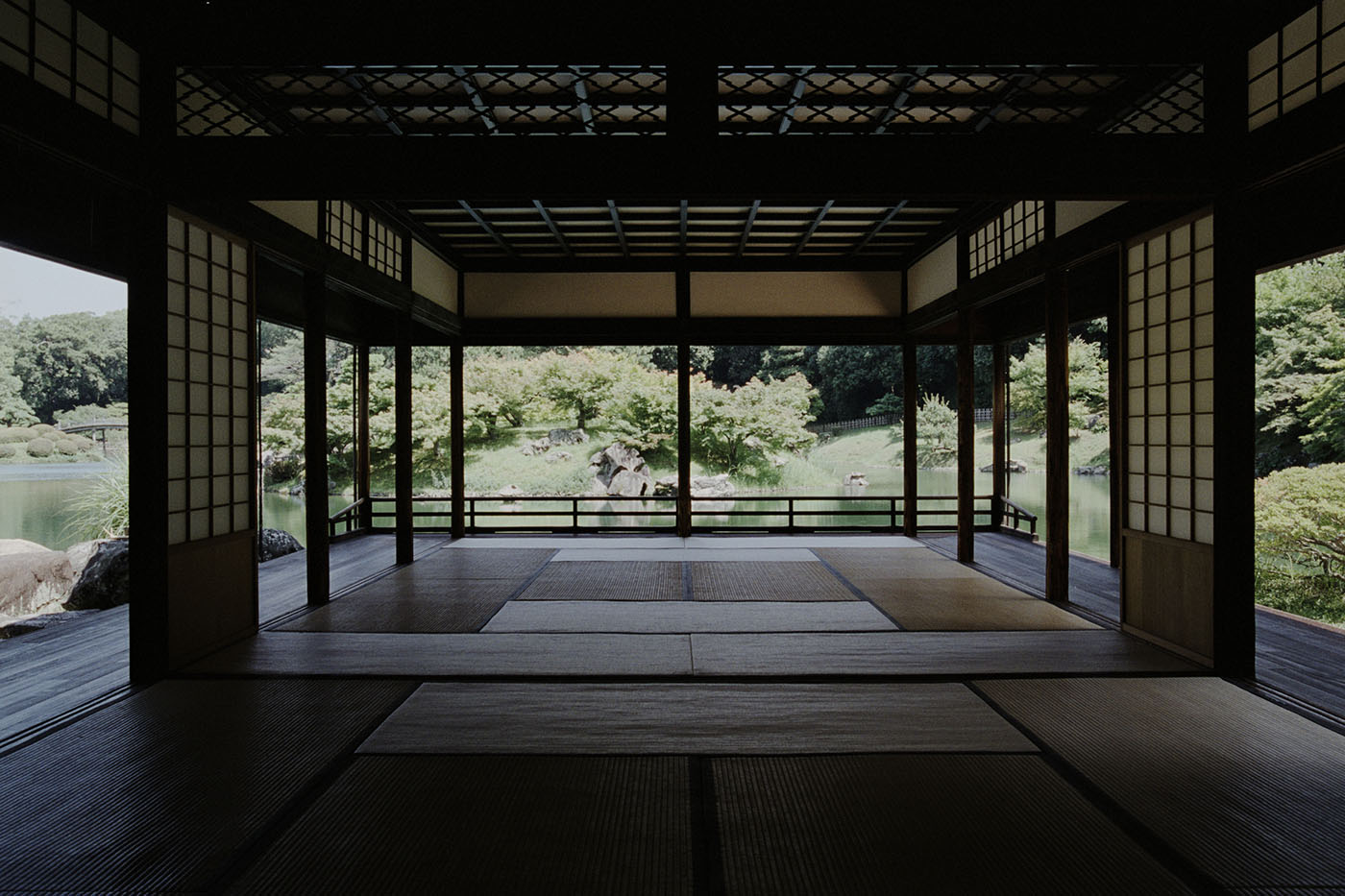 Yamaguchi: In Ritsurin Garden, there is a straightforward shakkei, or background, right there. There is a pond, Japanese architecture jutting out from the pond, and a kind of hill for viewing. The place is famous for its composition. It almost looks like the Shangri-La. The mountains in Kyoto tended to be quite distant, but I thought we might be able to capture a shakkei within closer quarters here. However, I had already noticed that it was difficult to tell whether the mountain was just a background or an intentional shakkei, and what the difference even was. I already knew that we wouldn’t be able to photograph it. On the other hand, Mr. Kumon was interested in the pine trees, which I didn’t quite care for.