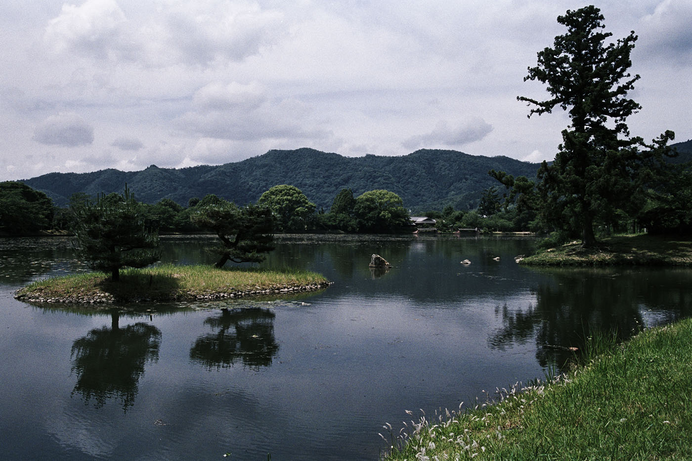 As well as Arashiyama on the west side of Osawa-no-ike, there are mountains in the backdrop to the north of the pond. But these mountains continue down and blend into the pond; they’re not isolated from it like Arashiyama, so I think they’re more like background than shakkei. As with Osawa-no-ike, lots of shakkei face valleys, which is something that’s done to separate the shakkei from the garden.